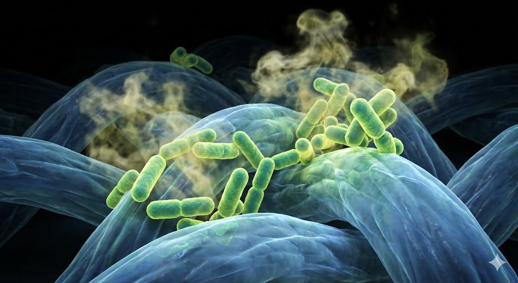 洗濯をして汚れを落としたつもりでも、繊維の奥にはわずかに皮脂やタンパク質が残ります。