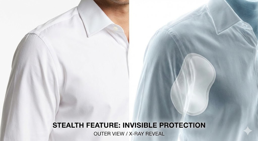 吸水性の高いパッドが汗を瞬時に閉じ込めるため、Yシャツにシミができることすらありません。