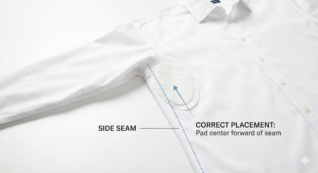 ジャケットに貼るのではなく、「インナー(肌着)」または「Yシャツ」の脇部分に貼ることです。