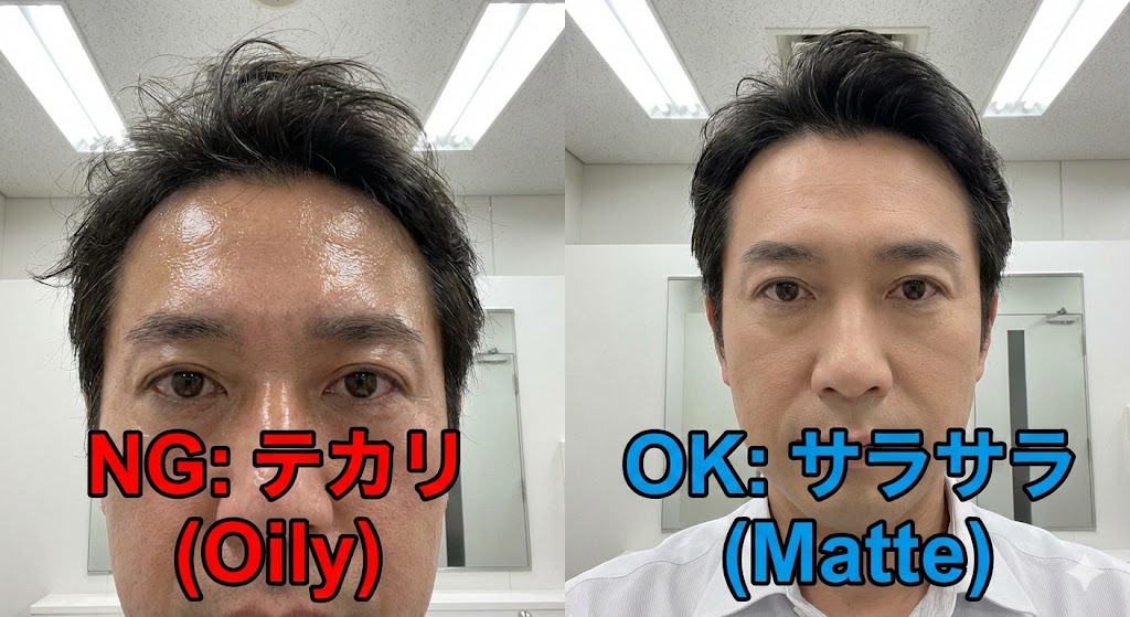 そこには、白い粉の痕跡はなく、ただ「最初から肌がきれいだった人」のような、涼しげなマット肌のおじさんが映っているはずです。