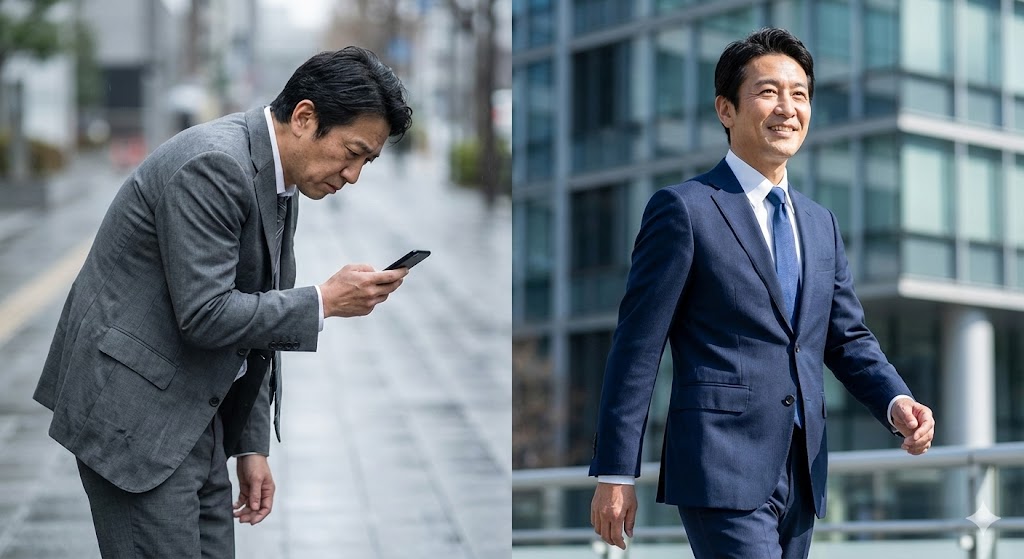 今回は、整体に通う時間もお金もかけず、数千円の「神アイテム」とほんの少しの意識改革だけで、スーツが似合う「本来のあなたのシルエット」を取り戻す方法を紹介します。