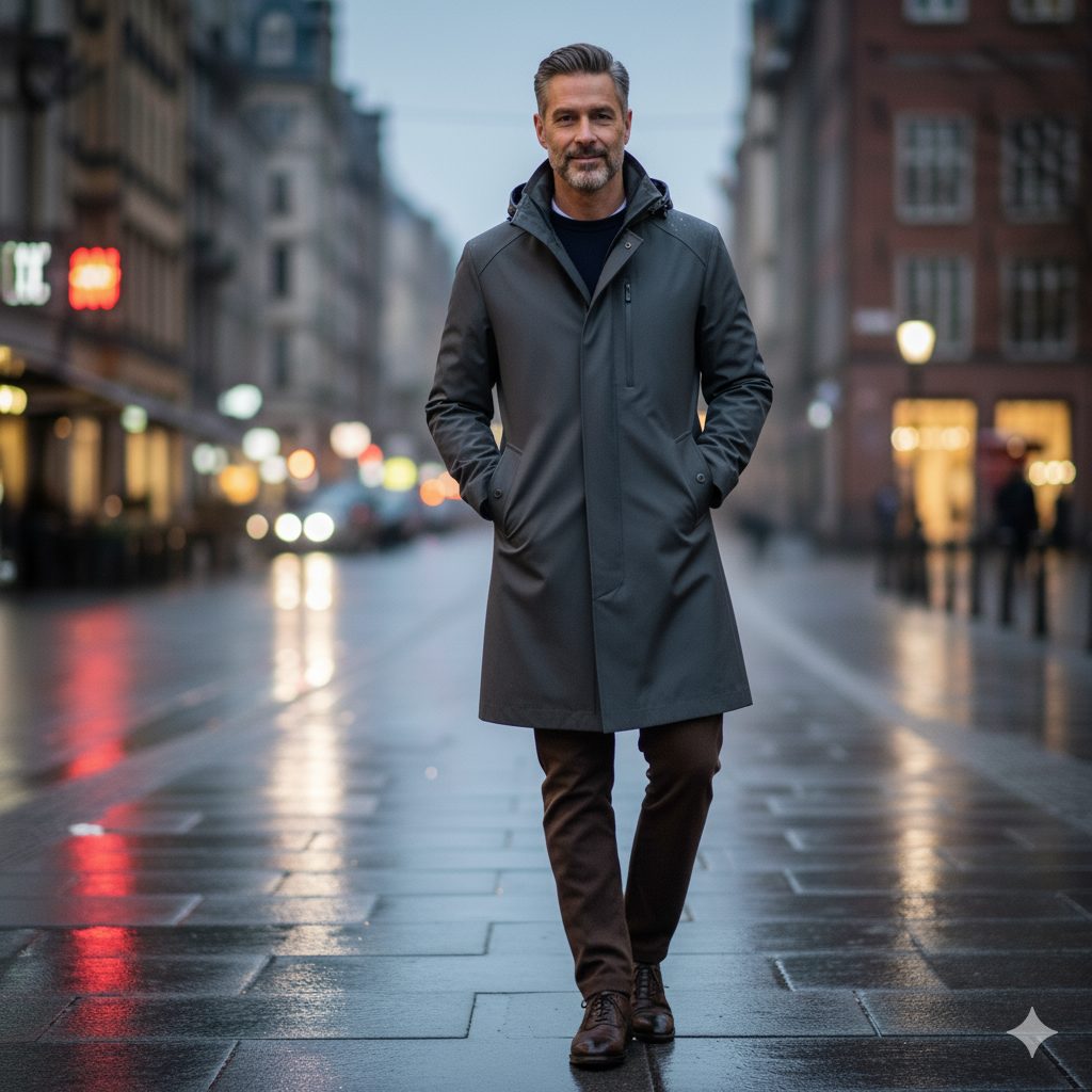 - 特徴: 天候に左右されず、常にパリッとした印象を維持。上質な防水性、軽量性、防風性を兼ね備えた高機能素材は、まさに“大人の合理性”を象徴しています。ビジネスでの外回りや旅行でも大活躍します。