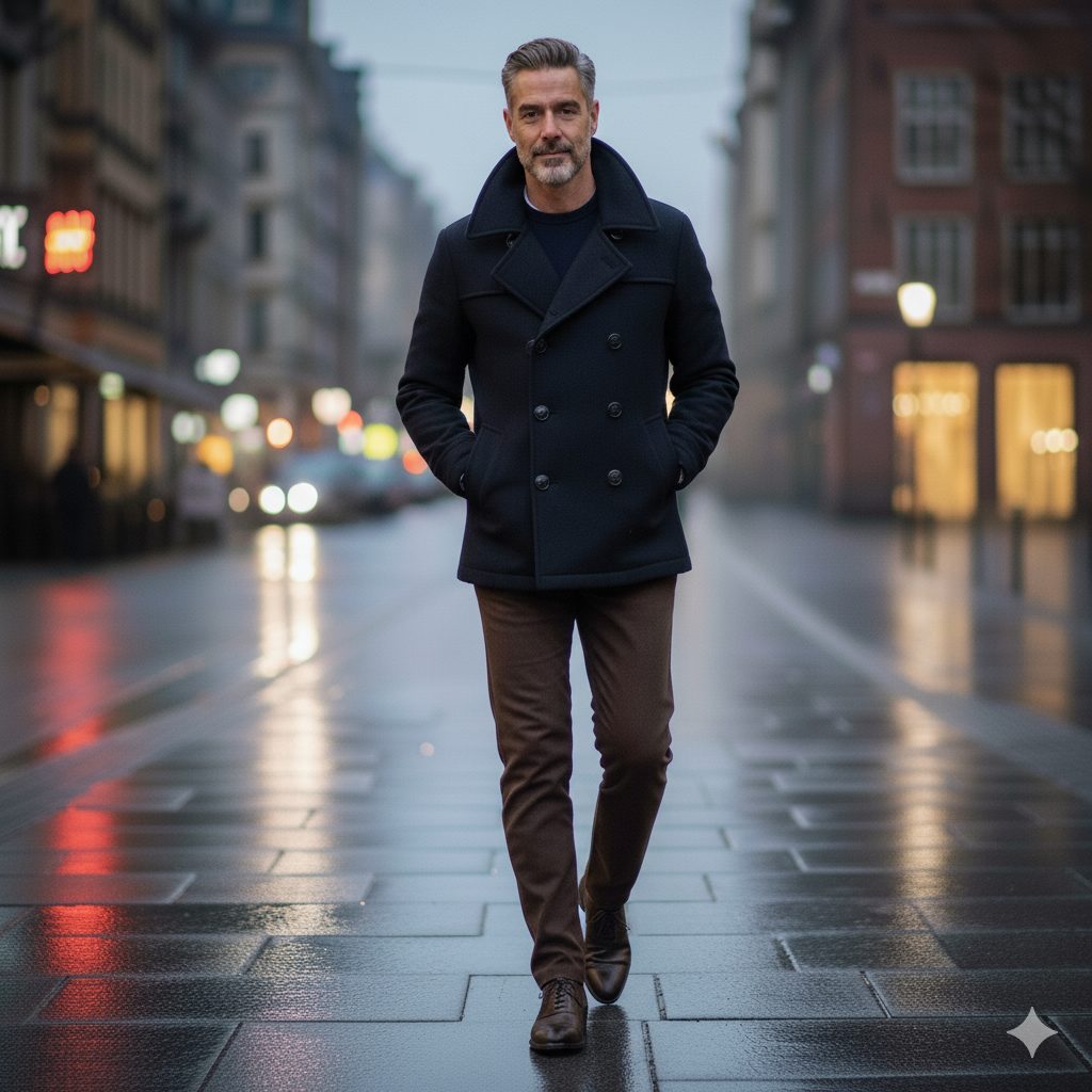 - 素材で勝負する: 40代が避けたいのは、テカテカ・ペラペラ素材。ウールやカシミヤ混、高級コットンなど、ハリとコシのある生地を選ぶことが大切です。(私の体験) 私も以前、安価なポリエステルコートを選んで失敗しました。1シーズンでヨレヨレになり、妻に「なんか疲れて見える」と言われて大反省。素材にこだわるようになってから、周囲の反応が明らかに変わりました。上質な素材は、着ているだけで自信につながります。